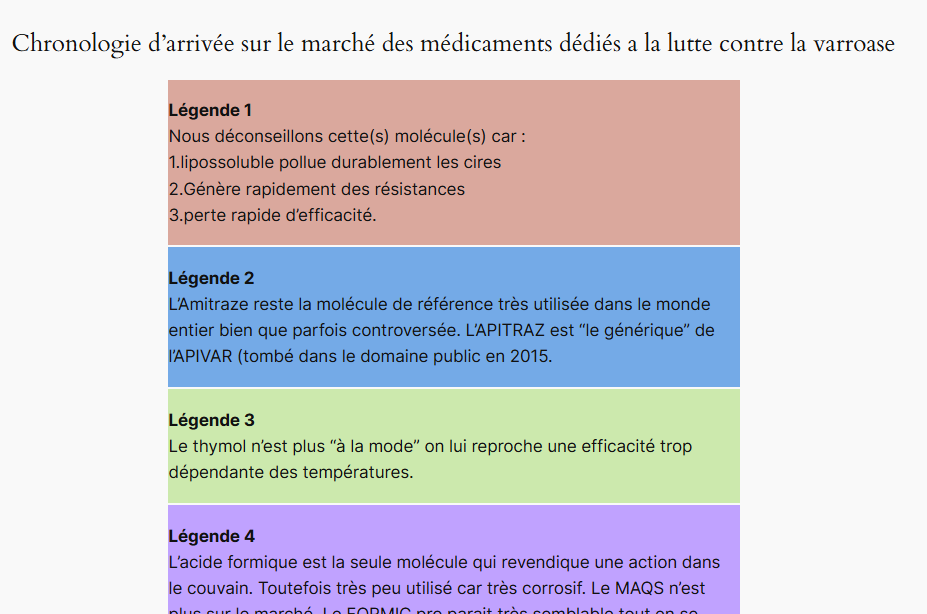 Chronologie d’arrivée sur le marché des médicaments dédiés a la lutte contre la varroase Légen…
